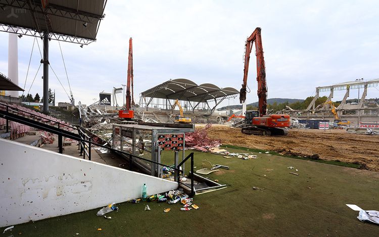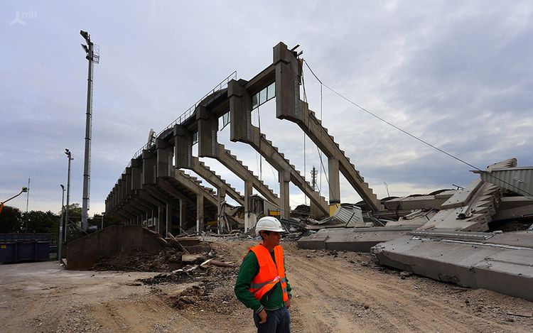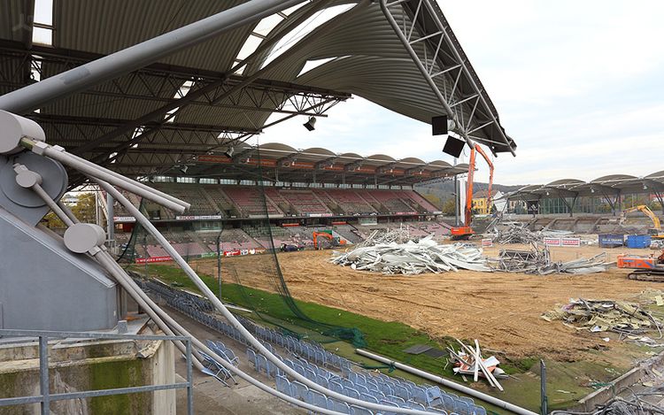Schon bald wird das Stadion komplett verschwunden sein und Platz für eine neue Spielstätte machen. Zurück bleibt allerdings eines der vier Flutlichter, die man als Erinnerung an das alte Stadion stehen lässt.