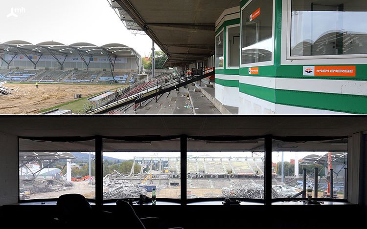 Sonntag, 12. Oktober: ein letzter Blick auf das Wiener Hanappi-Stadion. Doch wer genau hinschaut, sieht bereits die Bagger der Abrissfirma, die den ehemaligen Stolz des grünen Fußballclubs in den folgenden Wochen dem Erdboden gleichmachen werden.