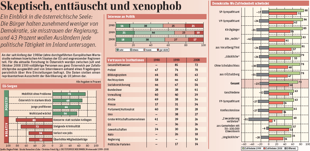 Was unser Land betrifft, förderte das Herausgeber-Trio Regina Polak, Ursula Hamachers-Zuba und Christian Friesl zutage, dass sich die Österreicher "zunehmend gegenüber der Politik verweigern" .