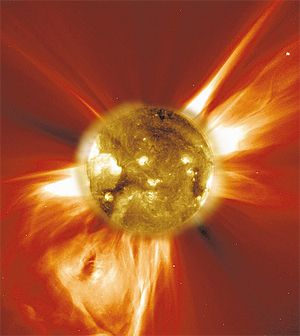 Wenn Forscher von einem "koronalen Massenauswurf" der Sonne reden, dann meinen sie den Ausstoß geladener Partikel. Große Sonneneruptionen und die so entstehenden Sonnenstürme sind, wenn sie auf die Erde gelangen, folgenreich: Telekommunikations- und Navigationssatelliten können gefährdet sein. 1973 kam es zu einem Stromausfall in Quebec, Kanada. Wenn Sonnenstürme auf die Erdatmosphäre prallen, kommt es zu Naturschauspielen: zu Polarlichtern, die es im Norden (Nordlicht) und im Süden (Südlicht) geben kann. (red)