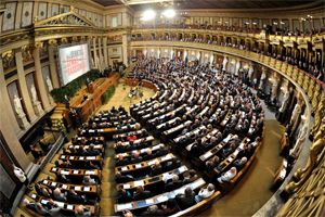 Der historische Sitzungssaal im Parlament bei einer Gedenkveranstaltung im Mai 2011.