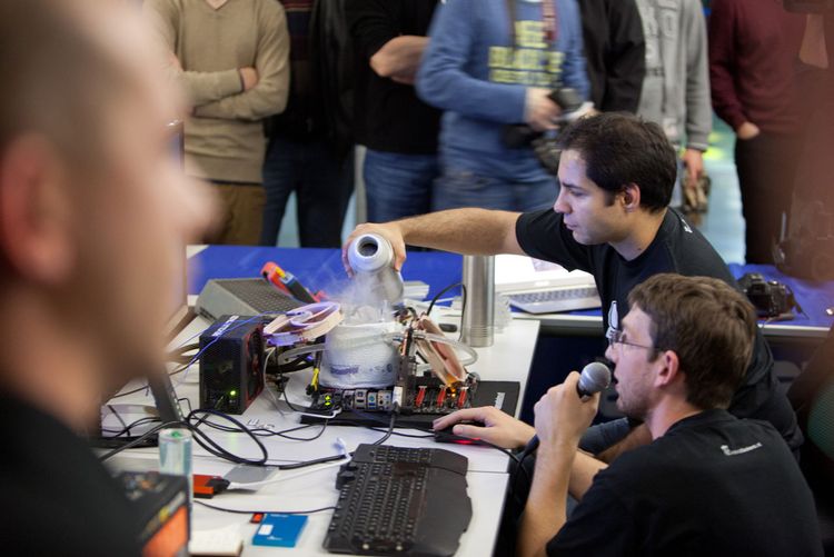Dass sich das Team und die Hardware in Extremregionen bewegten, zeigte der zweite Übertaktungsversuch vor Live-Publikum am Freitagnachmittag. "Leider sind uns beim Live-Event unsere beste CPU und das Mainboard abgeraucht, weshalb wir vor Publikum nur den 2. Platz vorzeigen konnten. Echt schade, weil das nicht unser Plan war. Wir haben zwar noch mit Backupequipment weitergekämpft, aber es ging dann einfach nicht mehr.", sagt Overclocker Matthias Zronek gegenüber dem GameStandard. Der Rekord konnte allerdings schon bei der Generalprobe wenige Stunden vor dem Event aufgestellt werden.
