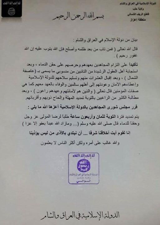 Noch aber heißt es Rebellen gegen Rebellen. Denn es ist unklar, ob und welche Verbände in der Freien Syrischen Armee (FSA) verbleiben. Klar ist nur, dass jene Kämpfer, die der Nationalen Koalition loyal gegenüberstehen, von nun an noch gefährlicher leben. Der "Islamische Staat in Syrien und der Levante" - der De-facto-Ableger von Al-Kaida, der nun auch in Syrien aktiv ist - veröffentlichte am Sonntagabend ein Ultimatum, wonach die verbliebenen Kämpfer der Nordfront der FSA innerhalb von 48 Stunden ihre Waffen niederlegen sollen und ihren Fehler, die Nationale Koalition zu unterstützen, einsehen sollen. (Stefan Binder, derStandard.at, 30.9.2013)