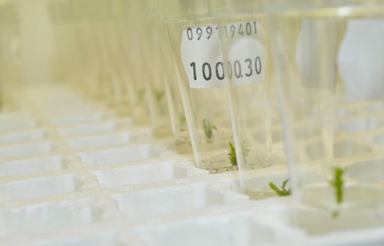 Ein Mikrobiologe und eine Chemikerin betreiben hier zwischen Osmosefiltern und Hochdrucksterilisatoren Grundlagenforschung am Hanfgewächs. In Versuchsreihen auf Grundlage des Meristems - das ist die Entsprechung der Stammzelle bei Pflanzen - testen sie die idealen Wachstumsbedingungen in Algenlösung und evaluieren in Absprache mit einer ähnlichen Einrichtung in den Niederlanden ihre Ergebnisse.