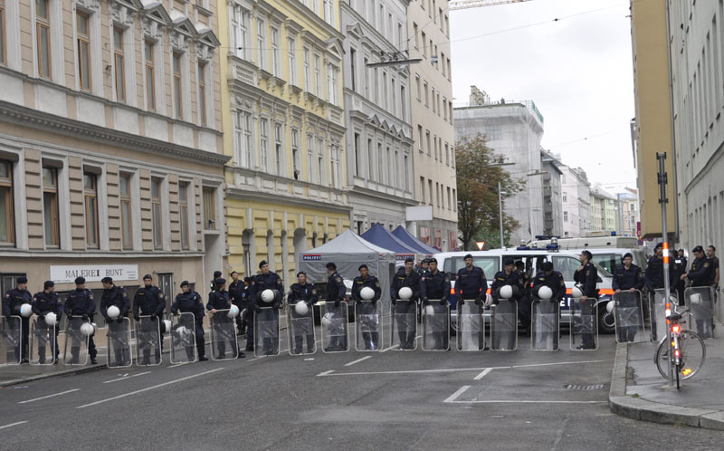 Die Gesamtzahl im Rahmen der Operation dürfte auch Polizisten umfassen, die andere einschlägige Häuser in Wien beobachten. Es soll verhindert werden, dass die Bewegung übergreift.