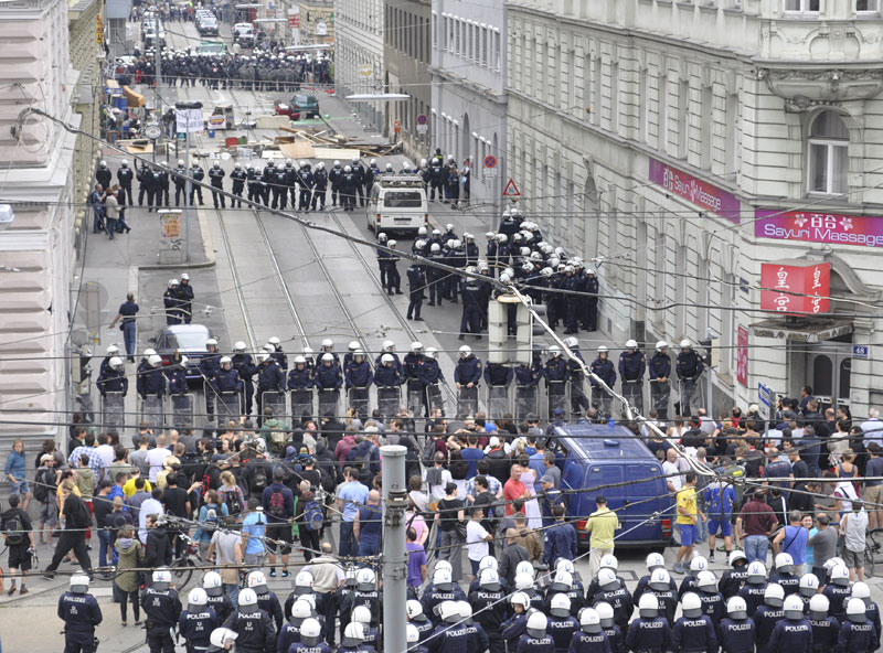 Dienstfreie Beamte wurden für die Räumung eingezogen und Polizisten aus mehreren Landespolizeidirektionen, darunter Ober- und Niederösterreich sowie der Steiermark, angefordert. Auch Sondereinheiten wie die Wega, ein Polizeihubschrauber, ein Panzerwagen und Wasserwerfer standen im Einsatz.