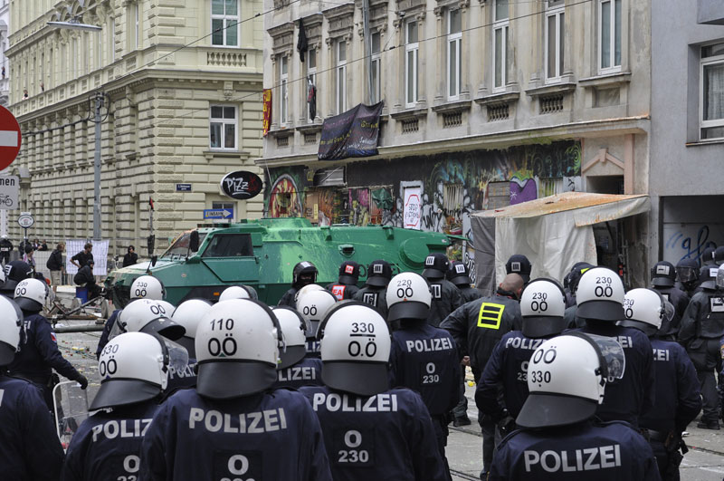 Kritik am überbordenden Polizeieinsatz bei der Räumung übt der Landessprecher der Grünen Wien, Georg Prack. "Der Polizeieinsatz steht aus meiner Sicht in keinem Verhältnis zum Anlass. Hunderte PolizistInnen, ein Panzerwagen, Wasserwerfer, großräumige Absperrungen und Platzverbote verunsichern die lokale Bevölkerung. Dabei wäre Deeskalation angebracht", kritisiert Prack.