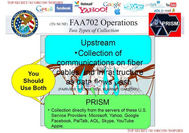 Die NSA greift bei "Upstream" auf den Umstand zurück, dass die USA als Drehkreuz des internationalen Internetverkehrs dienen. Bis zu 80 Prozent aller Datensätze, die zwischen mehreren Ländern verkehren, sollen über die USA laufen. Zusätzlich nutzen E-Mail-Anbieter oft externe Dienstleister, um die Nachrichten ihrer Nutzer auf Spam oder Schadprogramme zu überprüfen. Diese Drittfirmen sitzen oft in den USA, wodurch eine noch größere Menge an E-Mails für die Absaugung in Nordamerika infrage kommt. Zusätzlich saugt der britische NSA-Partner GCHQ auch in Europa Daten ab.