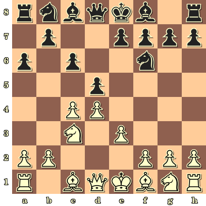 Carlsen antwortet darauf wieder einmal symmetrisch – 1...d5 – und bringt mit seinem vierten Zug die Tschebanenko-Variante der Slawischen Partie aufs Brett. Es ist das eine Variante, die lange Zeit scheel angeschaut wurde, weil Schwarz damit einen Randbauern bewegt, anstatt seine Entwicklung voranzutreiben. Das ist die Art von Zug, für die der Schachlehrer Anfängern gerne auf die Finger klopft: "Erst die Springer und Läufer entwickeln und rochieren, dann kannst du solche Bauernzüge machen."